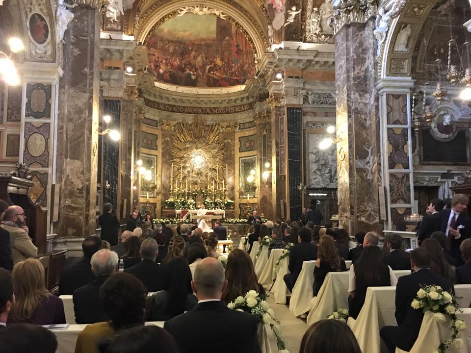 I neo-sposini non potrebbero essere più felici di così, come le foto della cerimonia dimostrano. Lisa Marzoli è splendida nel suo abito nuziale realizzato da Giada Curti, per l’Atelier Curti. Quest’ultima si è infatti recata dalla conduttrice proprio per visionare l’effetto finale, che è decisamente eccezionale: classico, senza tempo, elegante e romantico, un vestito che mette in risalto lo stato d’animo della sposa. Con le spalle scoperte e il corpetto in pizzo, l’abito è al tempo stesso sensuale e dolce. Elegantissimo e con gli occhi innamorati, ovviamente, anche lo sposo Francesco Borrelli che altro non attendeva che questo giorno. Numerosi gli invitati pronti a festeggiare la coppia convolata a nozze nella chiesa di Santa Maria della Vittoria in Via XX Settembre a Roma. Festeggiamenti che proseguiranno fino a notte inoltrata nelle sale del Saint Regis, tra le quali la prestigiosa sala da ballo Ritz.