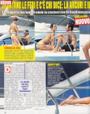 Dopo l’ennesima rottura nel marzo scorso infatti i due sarebbero tornati insieme proprio a ridosso dell’estate e avrebbero anche cominciato a parlare di matrimonio. Anzi stando agli scatti di Settimanale Nuovo avrebbero addirittura già messo in pratica il progetto. In barca al largo di Ponza, tra coccole, tenerezze e sguardi innamorati, ecco spuntare sull’anulare sinistro di entrambi un luccicante anello che ricorda in tutto e per tutto la fede nuziale. Il sospetto è legittimo, ma solo il tempo darà ragione o meno al gossip che è ormai dilagato. Intanto però Manuela Arcuri si gode il suo Chicco, in veste di fidanzato o già marito non importa, su una barca lontano da tutti e indisturbata si slaccia il reggiseno del costume e resta in topless a schiena in giù per un’abbronzatura senza segni. I paparazzi non se la fanno di certo sfuggire!