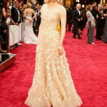 Ma se nell’ultima creatura del regista newyorkese Cate Blanchett ha indossato perfettamente i panni di una donna nevrotica, con gravi disturbi psicologici, che deve affrontare un duro trasloco da New York a San Francisco a causa della morte del marito, sul red carpet ha mostrato ben altro. Merito soprattutto della splendida creazione che indossava, un trionfo di tulle, cristalli e applicazioni firmato Armani Privè. L’abito, lungo e a mezze maniche, privo di scollatura donava lucentezza all’attrice che ha voluto ricalcare ancora di più questo aspetto indossando dei particolari orecchini Chopard. Un outfit decisamente vincente e in giusta sintonia con il premio che poi Cate Blanchett ha ritirato a fine serata, bissando così il successo del 2005, quando ricevette l’ambita statuetta come migliore attrice non protagonista per The Aviator, accanto a Leonardo Di Caprio.